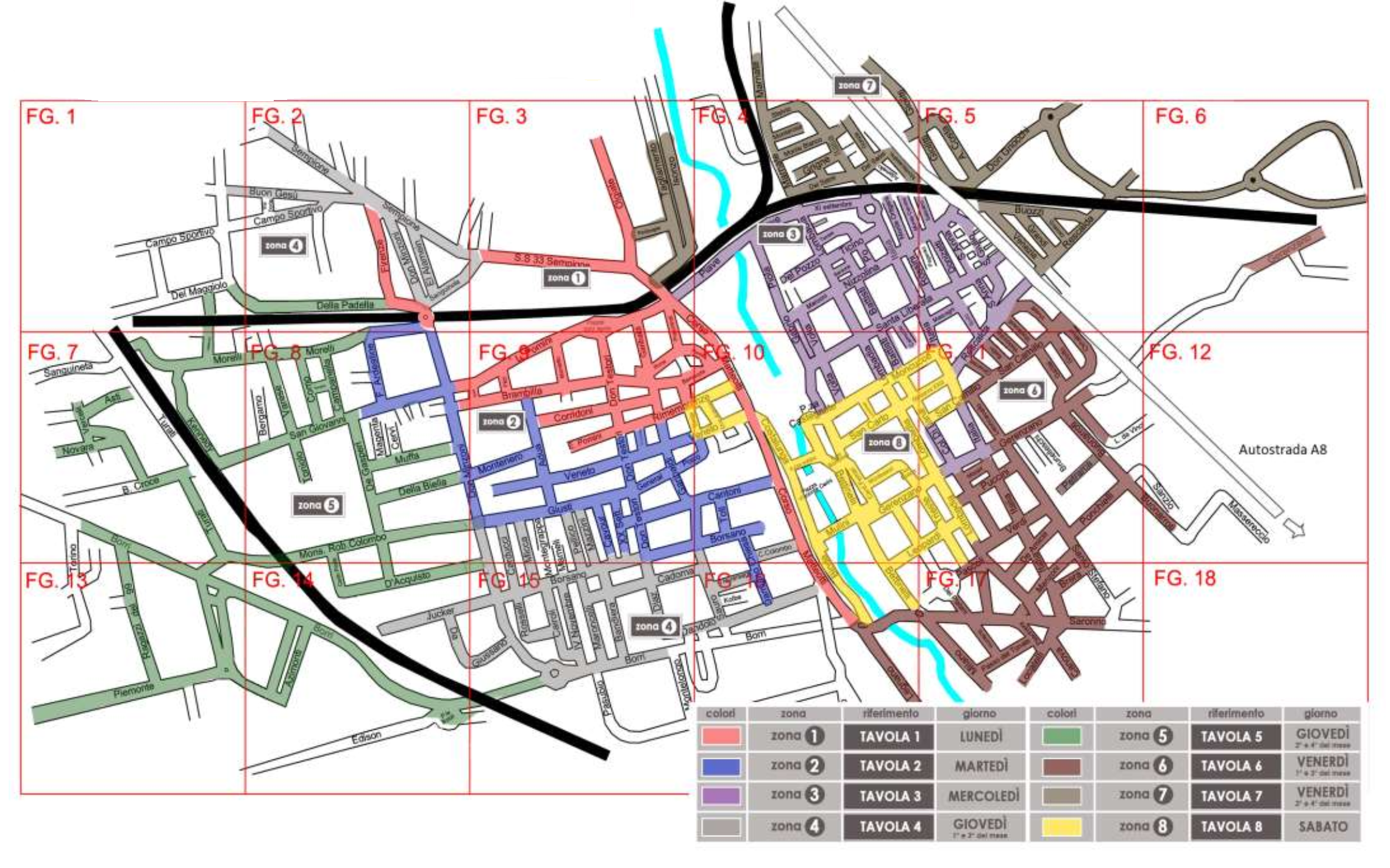 La pulizia meccanizzata delle strade e del suolo pubblico in generale viene effettuata con l’impiego di autospazzatrici e con l’ausilio di un operatore munito di soffiatore, secondo il seguente calendario.