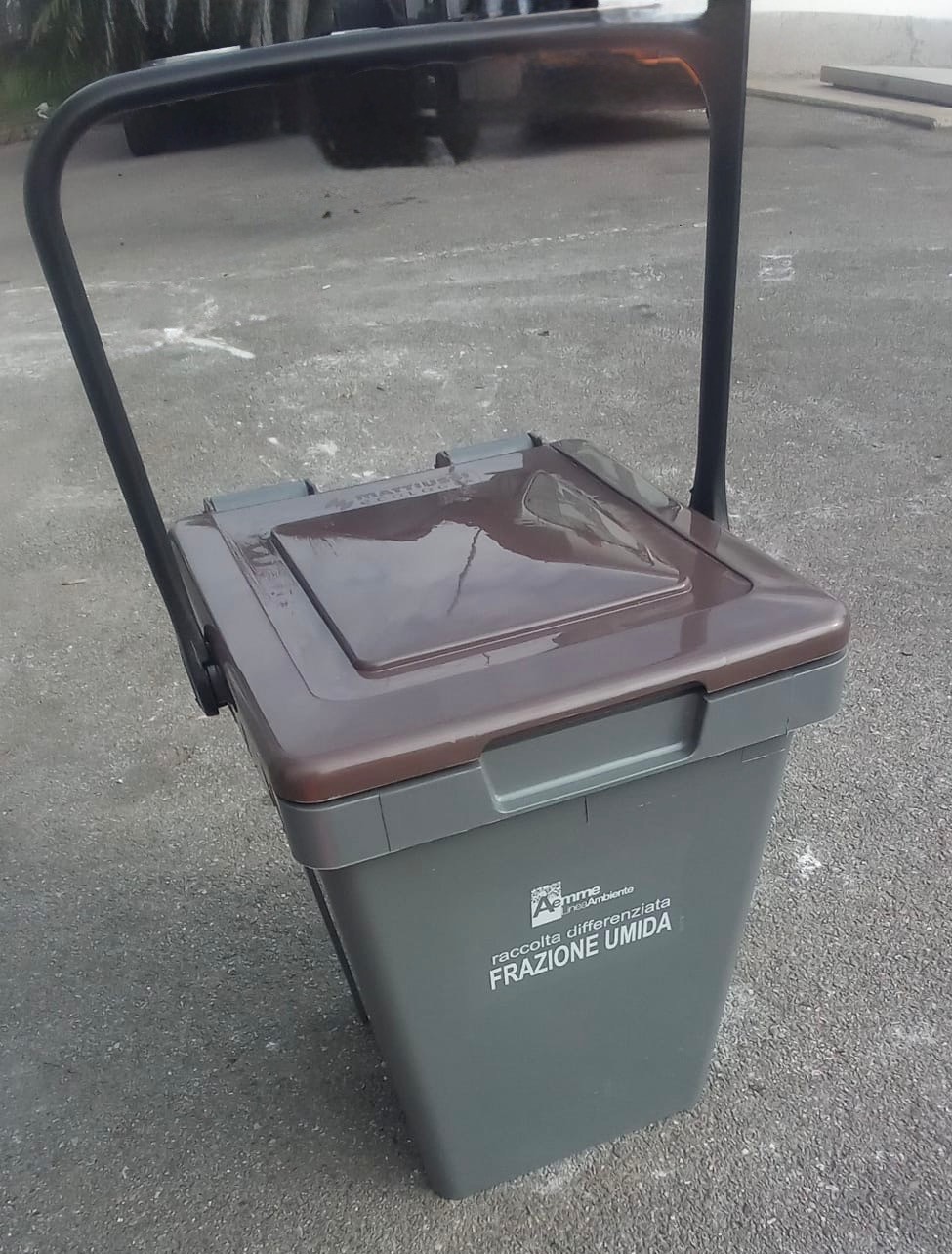 Utilizzare il contenitore da 25l fornito da AEMME Linea Ambiente (vedi foto) inserendo solo ed esclusivamente sacchetti in mater-bi: si ricorda che la frazione umida non verrà raccolta qualora venisse conferita nel contenitore areato (sottolavello) anziché nell’apposito contenitore chiuso conforme alle norme ergonomiche in riferimento al D.Lgs. 81/2008 (Testo Unico Salute e Sicurezza) e alle norme tecniche UNI ISO 11228 (parti 1, 2, 3).
